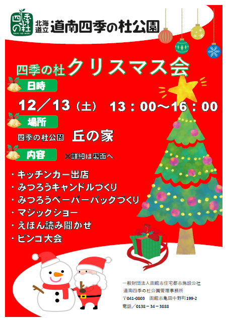 12月13日(土)に『四季の杜クリスマス会』を開催します!