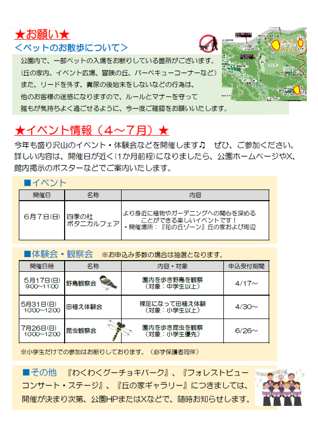 園内でであえる動植物